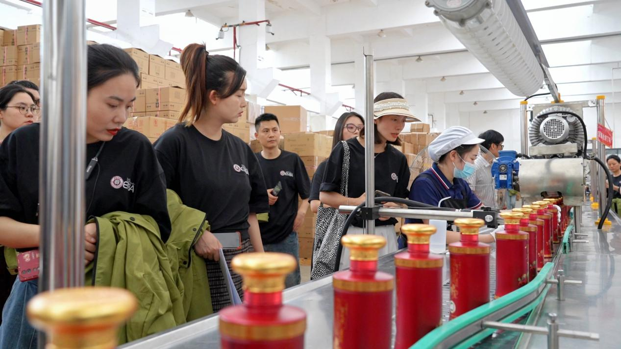 在包装车间,同学们见证了酱香酒从酿造到装瓶的最后一道工序,现代化的灌装流水线整洁高效,体现出企业对品质与效率的双重追求。